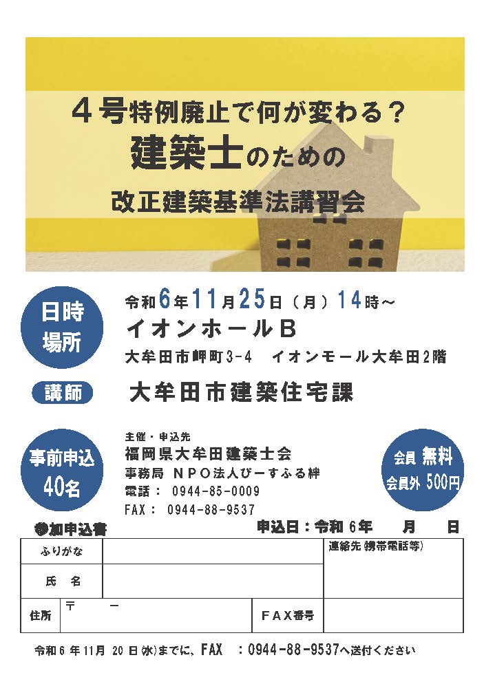 本会は、大牟田市及びその周辺地域に居住または勤務する建築士及び建築士の免許を受けることのできる有資格者を以て組織し、会員の品位の保持及びその業務の進歩改善を図り、建築文化の進展に寄与すると共に会員相互の親睦を図ることを目的に、